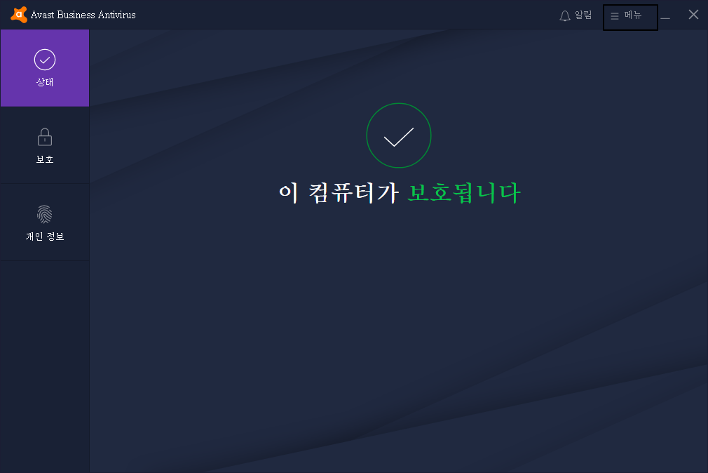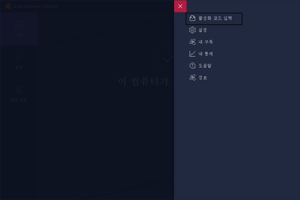 * 주의 : Avast 월정액 상품이나 멤버십 등의 제품을 사용하는 경우 활성화코드 등록 메뉴가 없습니다.